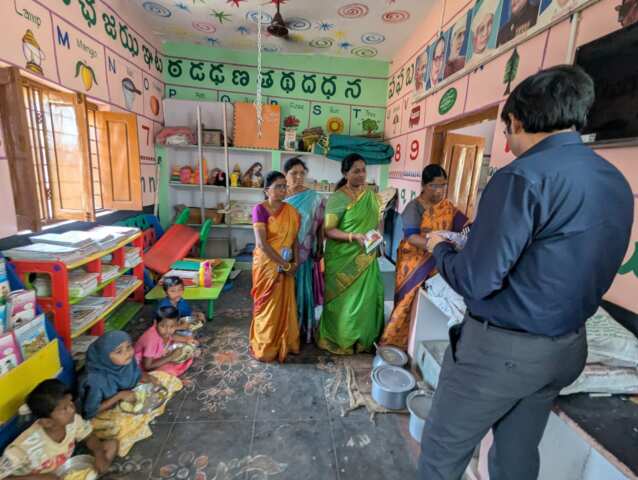గుండు సింగారం గ్రామంలోని అంగన్వాడీ కేంద్రం మరియు ప్రభుత్వ గిరిజన మోడల్ ప్రాథమిక పాఠశాలను కూడా కలెక్టర్ పరిశీలించారు. అంగన్వాడీ కేంద్రంలో పిల్లలకు అందిస్తున్న సౌకర్యాలు, పోషకాహారం పంపిణీ విధానం, పిల్లల హాజరు వివరాలను అడిగి తెలుసుకున్నారు. కేంద్రంలోని వంటగది, స్టోర్ రూమ్, త్రాగునీటి సదుపాయం, పరిశుభ్రత పరిస్థితులను సమగ్రంగా పరిశీలించారు. స్టోర్ రూమ్లో నిల్వ ఉంచిన బియ్యం, పప్పులు, గుడ్లు మరియు ఇతర ఆహార పదార్థాల నాణ్యతను తనిఖీ చేసి గుడ్ల పరిమాణాన్ని పరిశీలించారు. పిల్లలకు అందించే పోషకాహారం మెనూ ప్రకారం సమయానికి అందుతున్నదా అనే విషయాన్ని సిబ్బందిని అడిగి తెలుసుకున్నారు. అలాగే కేంద్రంలో చిన్నారులకు అందిస్తున్న ప్రీ-స్కూల్ విద్యా కార్యక్రమాలు, ఆటపాటల ద్వారా బోధన విధానాన్ని కూడా పరిశీలించారు. పిల్లలకు పోషకాహారం నాణ్యంగా, పరిశుభ్రంగా అందేలా, కేంద్రం పరిసరాలు పరిశుభ్రంగా ఉండేలా సిబ్బంది ప్రత్యేక శ్రద్ధ తీసుకోవాలని కలెక్టర్ సూచించారు.