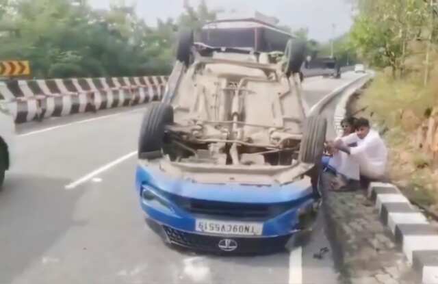 తిరుమల ఘాట్ రోడ్డులో కారు బోల్తా