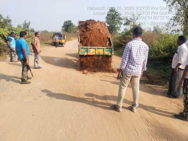 పోలీసు శాఖ ఆధ్వర్యంలో రోడ్డు మరమ్మతులు