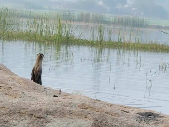గ్రామ చెరువు లో నీటి కుక్క